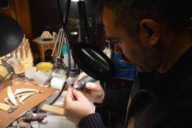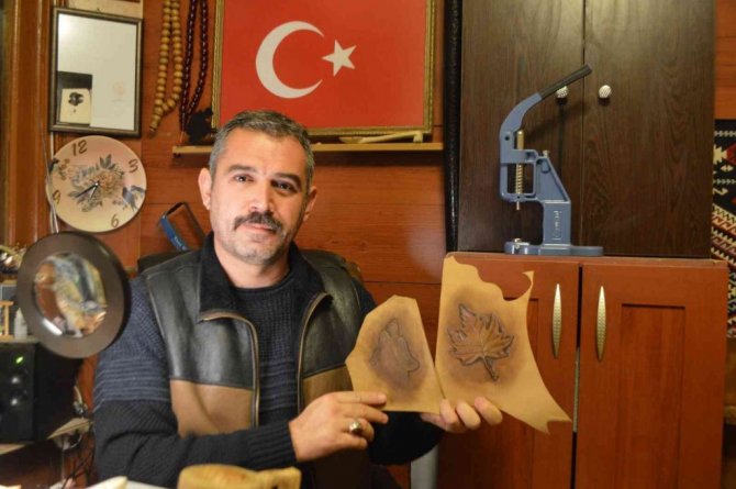 Ulucami Mahallesi'nde faaliyet gösteren atölyesinde hobi olarak başladığı uğraşla çakıl taşlarına, ahşap üzerine, ayrıca küçükbaş ve büyükbaş hayvan boynuzlarını oyma sanatı ile süsleyen Hasan Hüseyin Karatepe, deri üzerini de yakma tekniği yanı sıra "Craft" diye bilinen deri dövme ile de süslüyor.
