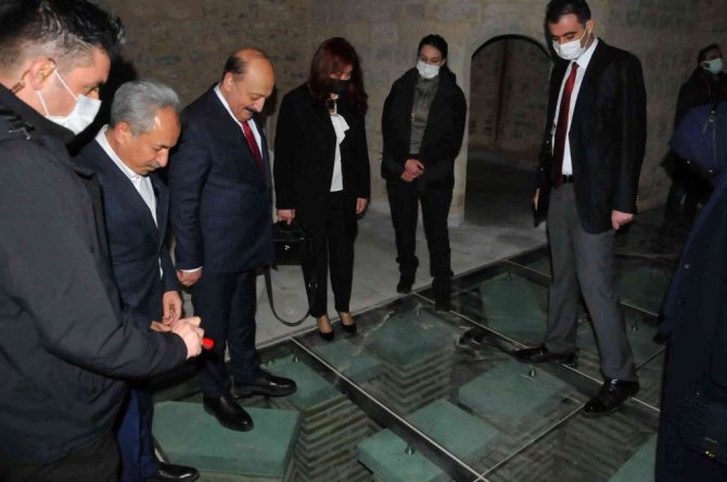 Ziyaretine ilk olarak restorasyonu tamamlanan tarihi kiliseden başlayan Bakan Bilgin, kilise hakkında Belediye Başkanı Salih Akkaya'dan bilgi aldı. Daha sonra Akşehir Belediyesi tarafından restorasyonu tamamlanan tarihi hamama geçen Bakan Bilgin ve beraberindekiler, yapıda incelemede bulundu. Hamamın ısıtma sistemini gösteren ve tabanı camlı kaplı olan alanda Başkan Akkaya'dan bilgi alan Bakan Bilgin, güzel bir eserin tarihe tekrar kazandırıldığını ifade etti. Bakan Vedat Bilgin Akşehir ziyareti kapsamında Akşehir Belediyesi tarafından restorasyonu tamamlanan Nasreddin Hoca Evi'ni de ziyaret etti.