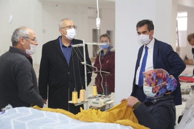 Çameli Belediye Başkanı Cengiz Arslan, 50 kadının iş sahibi olduğu atölyeyi ziyaret ederek incelemelerde bulundu.