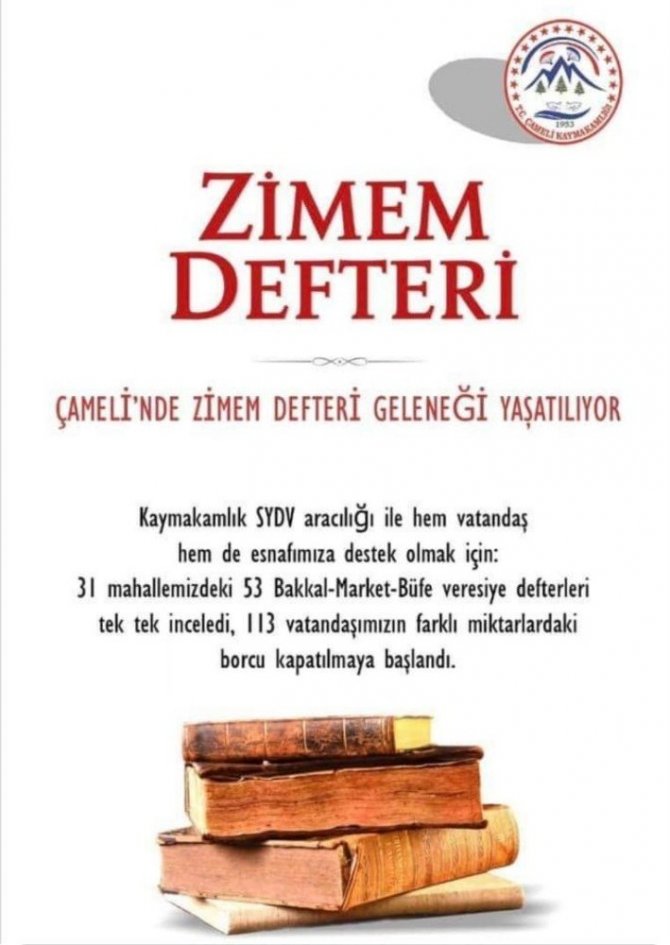 Çameli'de Osmanlı İmparatorluğu döneminde uygulanan Zimem Defteri geleneği sürdürülmeye devam ediyor. Bu şekilde durumu iyi olanlar borçlarını ödeyemeyen vatandaşlara yardımcı oluyor.