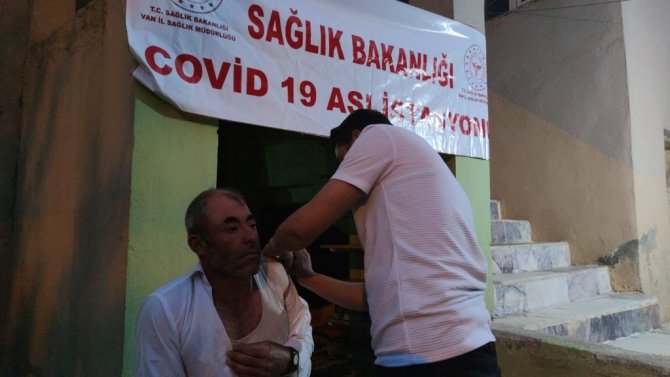 Van'ın Çatak ilçesinde akşam ve yatsı namazı arası cami bahçesinde kurulan aşı standına gelen muhtar ve mahalle sakinleri korona virüs aşısı oldu. Cami hoparlörlerinden yapılan aşı anonsları sonrası 2 saatte 100'ün üzerinde vatandaş aşı oldu.