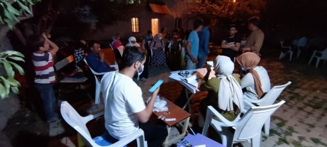 Türkiye, korona virüs salgını sürecinde hem hastane hizmetleriyle hem de aşılama planlamasıyla dünyaya örnek olmaya devam ediyor. En fazla aşılama yapan ülkelerin arasına giren Türkiye, olumsuz arazi şartlarına rağmen en ücra köşelerde yürüttüğü aşı çalışmalarıyla da dünyada adını sıkça duyurdu. Bu kapsamda Van İl Sağlık Müdürlüğü tarafından doktor, hemşire, sağlık teknikeri ve yardımcı personelden oluşturulan mobil aşı ekipleri çalışmalarını mesai mefhumuna bakmadan gece geç saatlere kadar sürdürüyor. Çatak Toplum Sağlığı Merkezi Başkanı Dr. Esra Seven'in de aralarında bulunduğu mobil sağlık ekibi, dağ bayır demeden aşılama çalışmalarını bu gün ilçeye 25 kilometre uzaklıktaki Bilgi Mahallesi'nde devam etti. Tarım ve hayvancılıkla ilgilendikleri için ilçe merkezine gidemeyen vatandaşlar için harekete geçen mobil sağlık ekibi, akşam saatlerinde mahalleye ulaştı. Mahalle Muhtarı Hüseyin Orak ve mahalle sakinleri tarafından karşılanan sağlık personeli cami bahçesinde aşı standı kurarak vatandaşların aşı işlemlerine başladı.