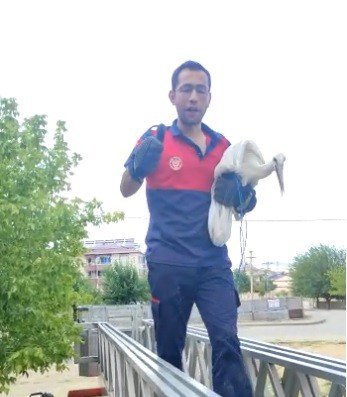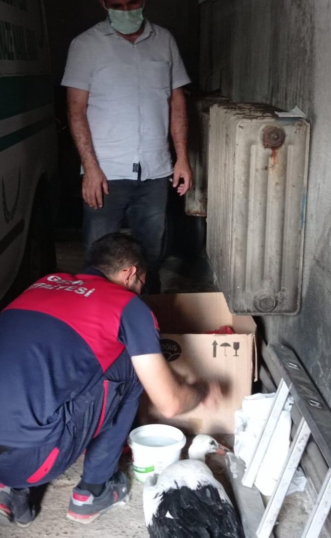 Kurtarılan leylek, tedavi altına alındı.