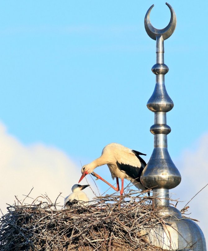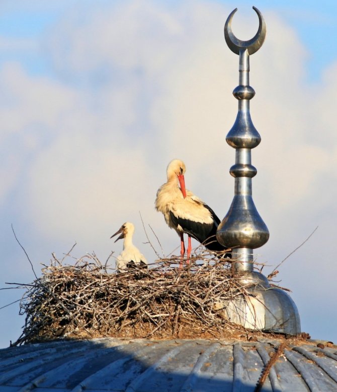 Türkiye'de şimdiye kadar gözlenen 485 kuş türünün 235'ini bünyesinde barındıran Hersek Lagünü'nün içinde bulunduğu Yalova'nın Altınova ilçesi, leyleklere de ev sahipliği yapıyor. İlçedeki Merkez Hacı Tevfik Yılmaz Camii'nin kubbesine yuva yapan leylekler, yazı bölgede geçirdikten sonra sonbaharda yuvalarını terk ediyor. Anne ve baba leylek tarafından beslenen leylek yavruları, havaların soğumaya başlamasıyla binlerce kilometre yol kat edebilmek için büyük göçe hazırlanıyor.