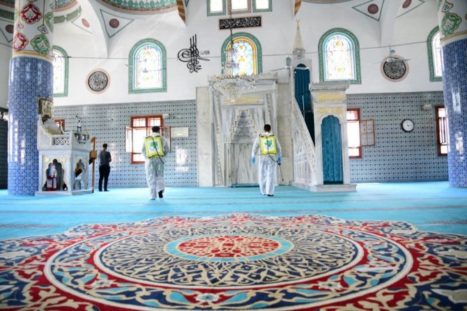 Mamak Belediyesi, yaklaşan Kurban Bayramı öncesi camilerdeki onarım, bakım ve temizlik çalışmalarını yoğunlaştırdı. İlçe sakinlerinin ibadetlerini gönül rahatlığı ile hijyenik koşullarda yerine getirebilmesi için ekipler cami halılarını yıkama makineleri ve deterjanlı sularla yıkıyor. Camlar siliniyor; kapılar, duvarlar temizleniyor. Virüse karşı etkili olan antiseptik dezenfektan ilacı da kullanan belediye ekipleri, yapılan çalışmalar ve alınan tedbirler kapsamında Mamaklı vatandaşların sağlığını koruma adına önemli işlere imza atıyor. Öte yandan Mamak Belediyesi tarafından camilerin bakım ve onarımı ile diğer ihtiyaçlarının karşılanması için de çalışmalar yürütülüyor.