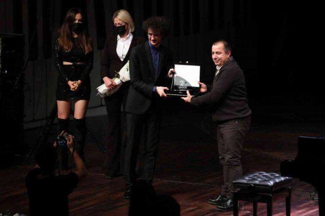 Konserin sonunda dakikalarca ayakta alkışlanan Can Çakmur'a, Antalya Büyükşehir Belediyesi Başkan Danışmanı Mert Batu tarafından teşekkür plaketi ve plaket verildi.