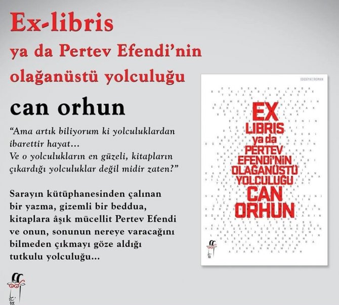 İkinci kitabıyla okuyucularının karşısına çıkan Can Orhun, New Yok Times gazetesinin arşivlerinde karşılaştığı, Macaristan’daki Corvina Kütüphanesi’ne ve Sultan Abdülhamid’e ait 19. yüzyıla ait bir haber yazısının kurguyu oluşturmak için kendisine yol gösterdiğini belirtti. Orhun, “Romanı yazım sürecinin öncesinde, henüz kurguyu oluştururken, döneme ait olayları araştırmak ve bunların kitabın kurgusu içerisinde nasıl yer alabileceğini planlamak en az kitabı yazarken çıktığım zihinsel yolculuk kadar sürükleyici bir yolculuk oldu benim için. Üstelik ne zaman biteceğini, bir sonraki yolun nereye varacağını, olayların kurguyu ya da kahramanlarını nereye sürükleyeceğini bilemediğim bir yolculuk. New Yok Times gazetesinin arşivlerinde karşılaştığım ve Macaristan’daki Corvina Kütüphanesi’ne ve Sultan Abdülhamid’e ait 19. yüzyıla ait bir haber yazısı kurguda belli bir yolu izlememe yol açarken, bir ortaçağ manastırına ait olduğu söylenen el yazmasındaki bir beddua gidişata bambaşka bir yön verdi. Ex Libris ya da Pertev Efendi’nin Olağanüstü Yolculuğu’nu yazmak, son noktasını koyana kadar bir sonraki olayların nasıl gelişeceğini ya da hikâyenin nasıl sonlanacağını romanın yazarı olarak benim bile tam bilemediğim bir yolculuk oldu” şeklinde konuştu.