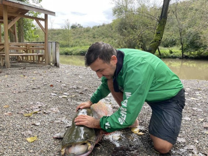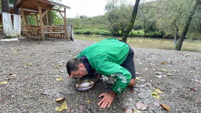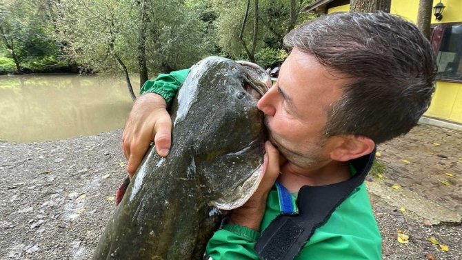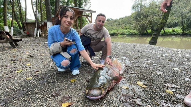 Düzce'nin Cumayeri ilçesinde rafting işletmeciliği yapan Birol Tepe, can sıkıntısında Melen deresine attığı olta ile 1.8 metre uzunluğunda yayın balığı yakaladı. Yaklaşık 51 kilo ağırlığındaki balığı dereden 3 kişi çıkartılmasının ardından yayın balığı işletmecinin bahçesindeki havuza bırakıldı. Sosyal medya hesabından fotoğrafları ve videoları paylaşmasının ardından yoğun bir talep alan yayın balığını görenler fotoğraf çekildi. 3 saatlik çalışma ile sudan çıkarılan dev balık, 3 bin TL'ye satıldı.