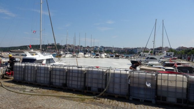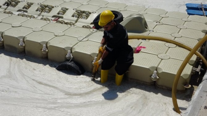 Çevre ve Şehircilik Bakanlığı öncülüğünde başlatılan Marmara Denizi Eylem Planı çerçevesinde Marmara Denizi'nden Kuzey Ege'ye kadar ilerleyen müsilaja karşı geçtiğimiz salı günü temizlik seferberliği başlatılmıştı. Denizlerin müsilajdan temizlenmesi için bugün de Yat Limanı'nda çalışmalar sürüyor. Su motorları ve belediyeye ait vidanjörler ile liman içinde su üzerinde biriken beyaz ve yapışkan tabaka çekiliyor.
