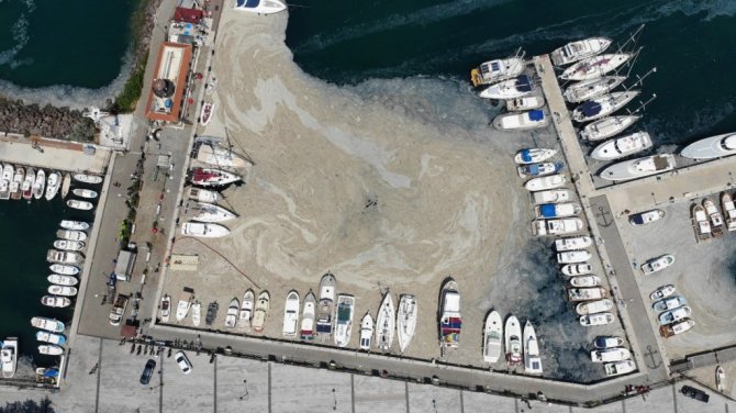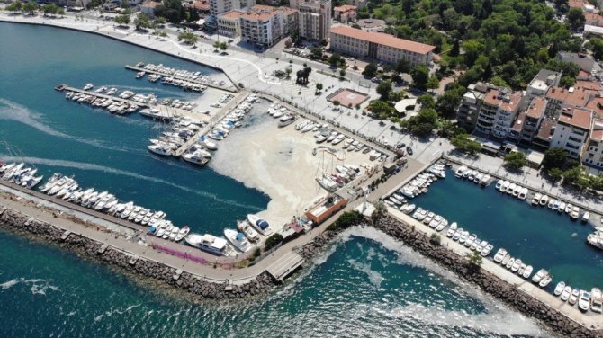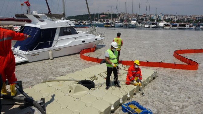 Marmara Denizi ve Çanakkale Boğazı'ndaki müsilaj (deniz salyası) ile mücadele kapsamında Yat Limanı'nda deniz temizliği gerçekleştirildi.