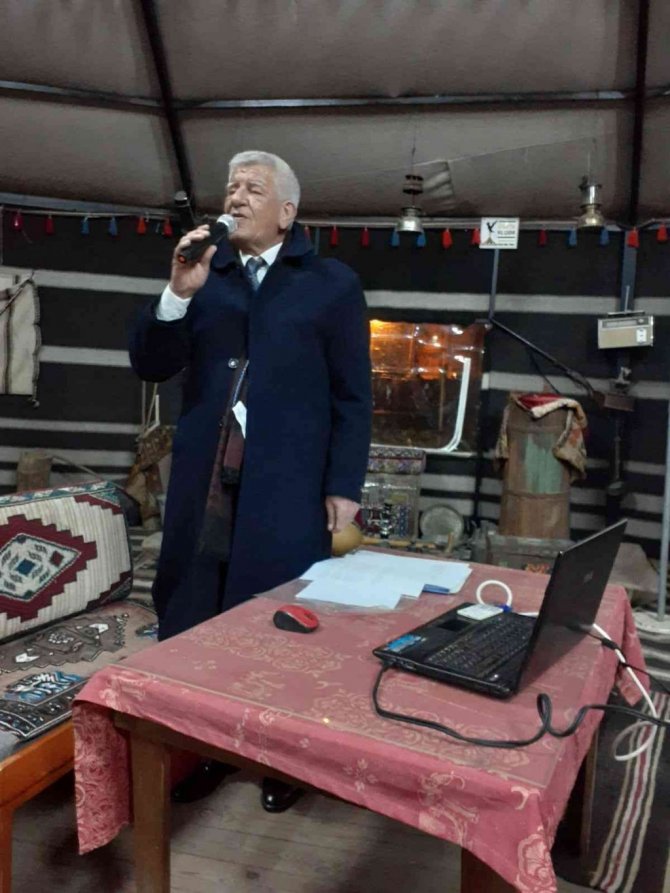 Derneğin denetim kurulu üyesi ve Muğla Sıtkı Koçman Üniversitesi Milas Meslek Yüksekokulu Öğretim Üyesi Mehmet Günlük tarafından yapılan açılış konuşmasının ardından söz alan Türkolog Ali Şahinoğlu, tarihin önemli anıları ve şiirlerini, sinevizyon eşliğinde izleyicilere aktardı.