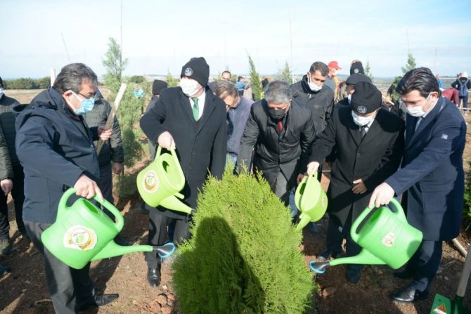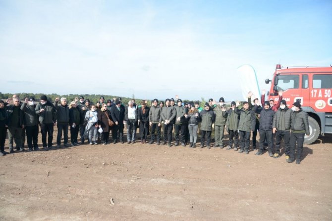 Törende bir konuşma gerçekleştiren Orman Bölge Müdürü Enver Demirci, "Sayın Cumhurbaşkanımızın himayesinde 2019 tarihinden itibaren her 11 Kasım da ağaçlandırma etkinlikleri yapılmaktadır. Dünya da orman varlığı azalırken FAO verilerine göre orman varlığını artıran ender ülkelerden biri olan ülkemizde bu yılki etkinliğimizin ana teması 84 milyon vatandaşımızın her biri için 3 er adet fidan dikilerek toplamda 252 milyon fidanın toprakla buluşturulmasıdır. Şehitler yurdu Çanakkale'miz de ise 13 ayrı mevkide bugün için 43 bin adet fidan dikilecektir. Yine bu bağlamda 2021 yılsonuna kadar ilimizde 8.073.000 adet fidan toprakla buluşturulacak. Yüzde 52'si orman olan ilimizin yeşil örtüsüne katkıda bulunulacaktır. İçinde bulunduğumuz bu mevkide 300 adet servi, kızılçam ve mazı fidanı toprakla buluşturulacaktır" dedi.