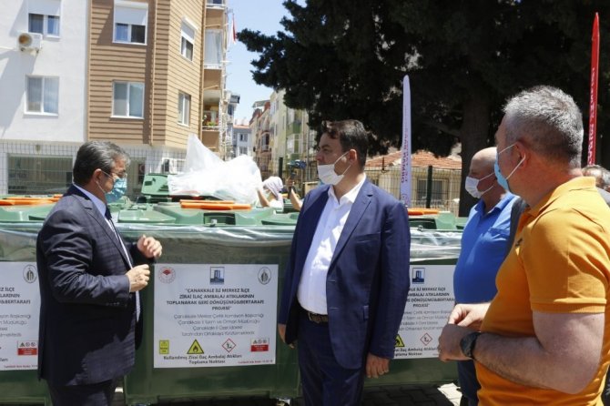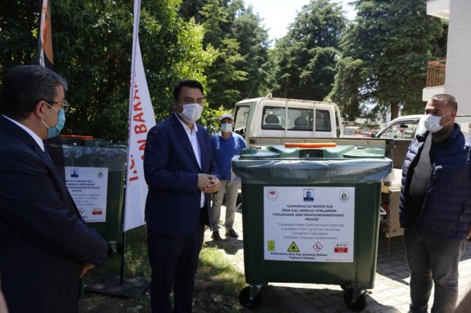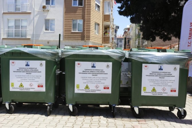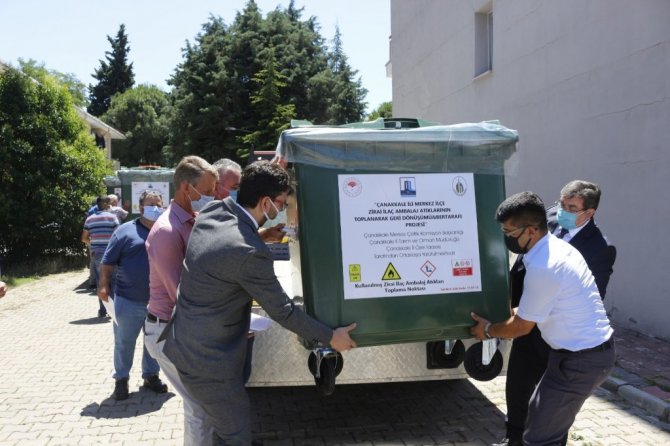 Çanakkale İl Tarım ve Orman Müdürlüğü öncülüğünde hayata geçirilen "Zirai İlaç Ambalaj Atıklarının Toplanarak Bertaraf Edilmesi" Projesi kapsamında merkez ilçeye bağlı köylere 50 konteyner dağıtıldı.