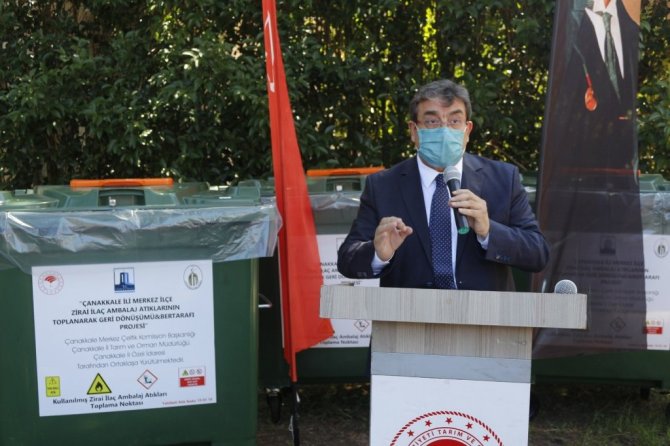Projenin 2017 yılında başladığını belirten Çanakkale İl Tarım ve Orman Müdürü Erdem Karadağ; "İlk olarak Bayramiç'te 15 köyü ve 4 mahalleyi kapsayacak zirai ilaç atıklarının bertaraf edilmesi projesiydi. Biz orada yine özel idaremiz, il müdürlüğümüz, belediye başkanlığımız ve muhtarlarımızla ciddi bir projeye imza attık. Proje başarılı bir şekilde devam ediyor. Aynı zamanda bu 3.5 sene içerisinde baktığımız zaman toplamda 15 ton civarında zirai ilaç atığını biz toplayıp bertaraf ettik. Yani sayısal olarak bunu verecek olursam yaklaşık 300 bin adet zirai ilaç ambalajını biz doğaya atılmadan toplamışız. Buda çok önemli bizim için. Geçen yıl Ezine Çeltik Komisyonu, kaymakamlık, il müdürlüğümüz orada da bir proje yaptık. Bayramiç projesine onu ekledik. Yani 45 tane daha konteyner aldık ve zirai ilaçlamanın yoğun olarak yapıldığı 37 yerleşim bölgesine yerleştirerek bu projenin içerisine dahil ettik. Bu sene de yine merkez köylerimizden 24 köyümüze 50 tane konteynerleri muhtarlara teslimini yapacağız" dedi.