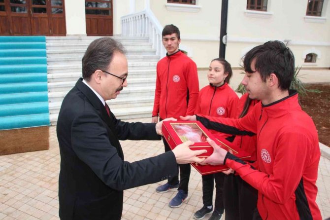 Burada bir konuşma yapan Vali Kızılkaya, "Çanakkale zaferi 107'inci yıl dönümü vesilesiyle Gelibolu Yarımadası'ndan alınan bu kutsal toprağı, seniz suyu ve şanlı bayrağımızı Cumhurbaşkanımız Recep Tayyip Erdoğan'a arz edilmek üzere teslim alıyor ve Eskişehirli sporcularımıza teslim ediyorum" dedi.