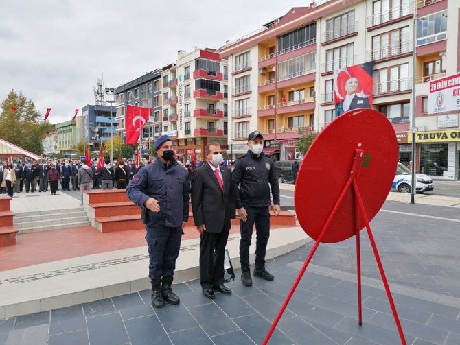 Çanakkale'nin Çan ilçesinde 29 Ekim Cumhuriyet Bayramı'nın 98. yıl dönümü dolayısıyla çelenk sunma töreni gerçekleştirildi.