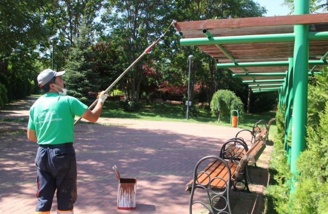 Çankaya Belediyesi ekipleri, tamire ihtiyacı olan ahşap bölümlerin tamirini yaparken bir yandan da çocuk oyun alanları ve demir aksamlarda da gerekli onarımları gerçekleştiriyor. Bitkisel bakımların ve boya çalışmalarının da yapıldığı parklar yenilenen yüzleriyle Çankaya halkına hizmet ediyor.