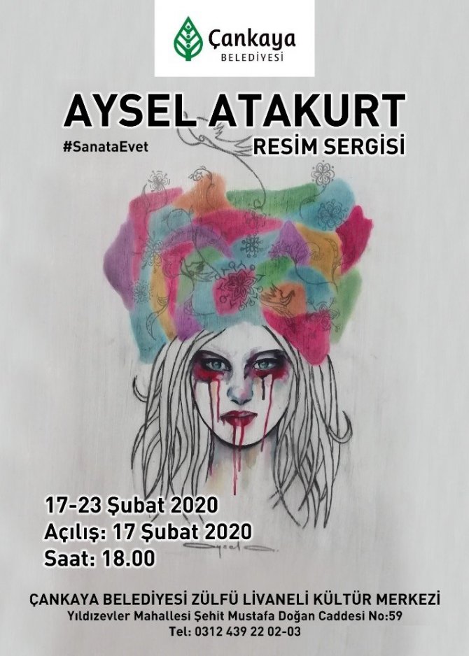Çankaya Belediyesi Meclis Üyesi Ressam Aysel Atakurt’un alüminyum plakalar üzerine resmettiği eserleri, Zülfü Livaneli Kültür Merkezi’nde 17-23 Şubat tarihleri arasında sergilenecek. Yılmaz Güney Sahnesi’nde Kızılırmak Müzik Grubu tarafından 20 Şubat saat 19.30’da gerçekleşecek “Türkü Şöleni” ücretsiz konseri ise koltuk sayısı ile sınırlı olacak.