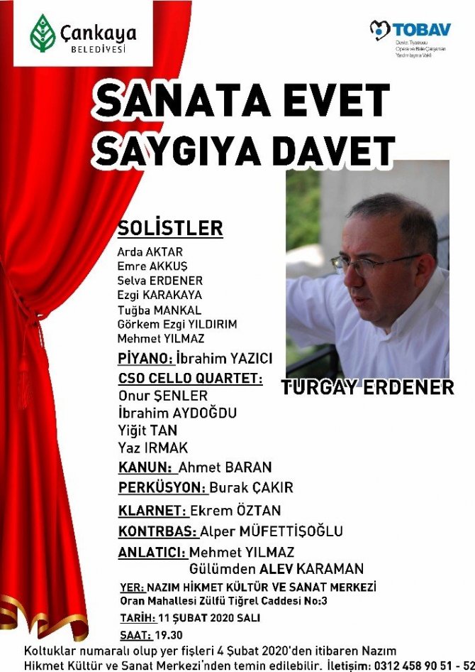 Başkent’te sanatın nabzını tutan Çankaya Belediyesi, Şubat ayında da geniş bir yelpaze ile sanatseverleri konun etmeye hazırlanıyor. Çağdaş Sanatlar Merkezi, Zülfü Livaneli Kültür Merkezi, Nazım Hikmet Kültür ve Sanat Merkezi ile Yılmaz Güney Sahnesi’nde Ankaralıları farklı etkinliklerle buluşturacak Belediye, Beşir Göğüş Türk Dilini ve Çocuk Edebiyatını Geliştirme Ödülü törenine de ev sahipliği yapacak.