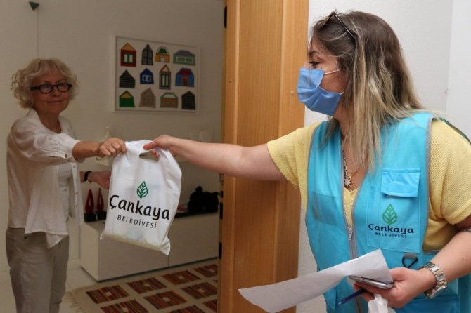 Çankaya Belediyesi pandemi sürecinde 65 yaş üzeri vatandaşlara temizlik seti dağıtımını sürdürüyor.