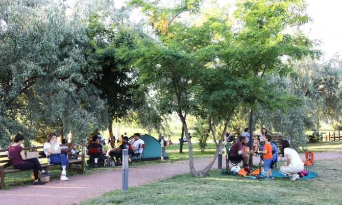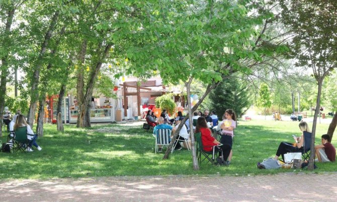 Çimenlerine özgürce basılabilen Çankaya parkları 7'den 70'e tüm halkın tercihi olurken, gündüzleri bunaltıcı sıcakta çalışanların da mesai bitiminde dinlenme mekanları olmaya devam ediyor.