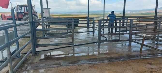 Kütahya'nın Aslanapa ilçesinde, Canlı Hayvan Pazarı ve Borsası belediye tarafından dezenfekte edildi.