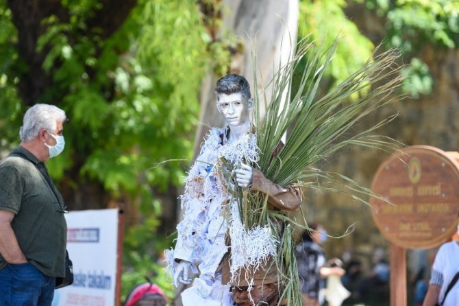 Antalya'da, Muratpaşa Belediyesi 5 Haziran Dünya Çevre Günü'nde, canlı heykel performanslarıyla dünyanın karşı karşıya olduğu çevre felaketine canlı heykellerle dikkat çekti. Atıklardan yapılmış kıyafetleriyle, vatandaşların arasına karışan canlı heykeller büyük ilgi çekerken Belediye Başkanı Ümit Uysal, "5 Haziran Dünya Çevre Günü insanlığı düşünceye sevk etsin. Çevremizdeki tahribatı önleyelim" dedi.