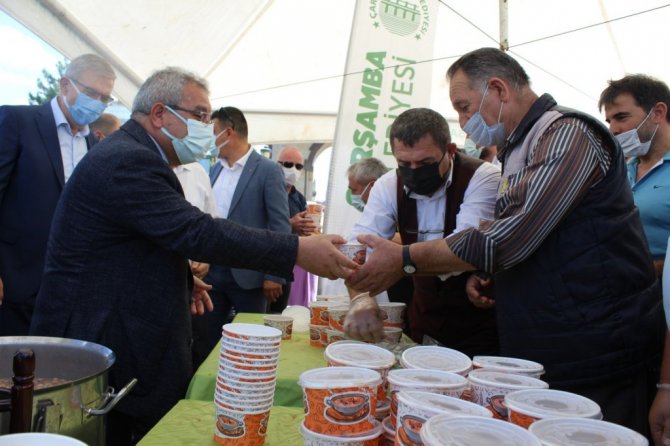 Aşı standını gezen heyet daha sonrasında Aşure Günü olması vesilesiyle Çarşamba Tarihi Köprüsü üzerinde yer alan aşure dağıtım noktasını ziyaret etti. Çarşamba Belediyesi Aşevi'nde hazırlanan toplam 2 bin 500 aşure vatandaşlara dağıtıldı. AK Parti Samsun Milletvekili Ahmet Demircan, Çarşamba Kaymakamı Doç. Dr. Şükrü Yıldırım ve Belediye Başkanı Halit Doğan Aşure Günü'nün tüm insanlara bolluk ve bereket getirmesini dileyerek vatandaşlara aşure ikramında bulundu.