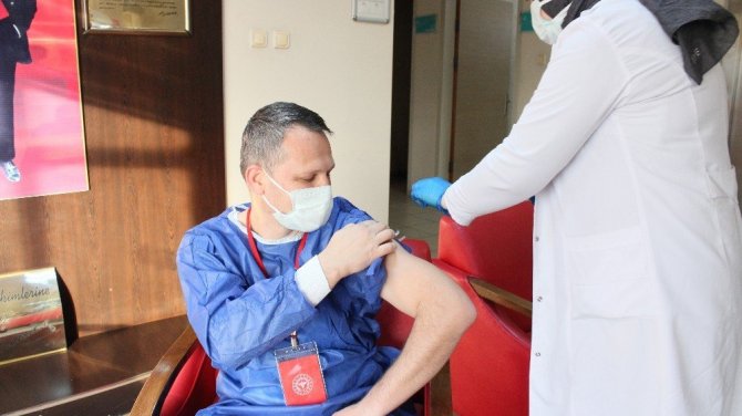 Kovid-19 aşılarının Samsun'un Çarşamba ilçesine gelmesiyle birlikte ilk olarak Aile Sağlığı Merkezi Müdürü Dr. Şevki Gülay ve sağlık çalışanları aşı oldu.