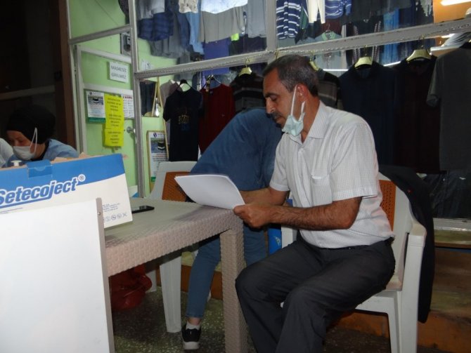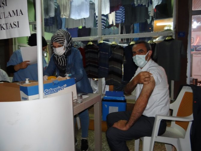 Çarşı merkezinde kurulan mobil aşı istasyonunda aşı yoğunluğu
