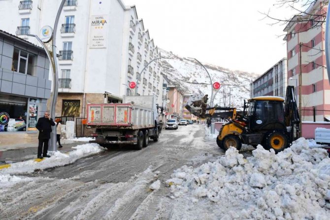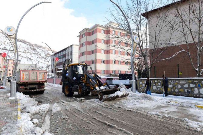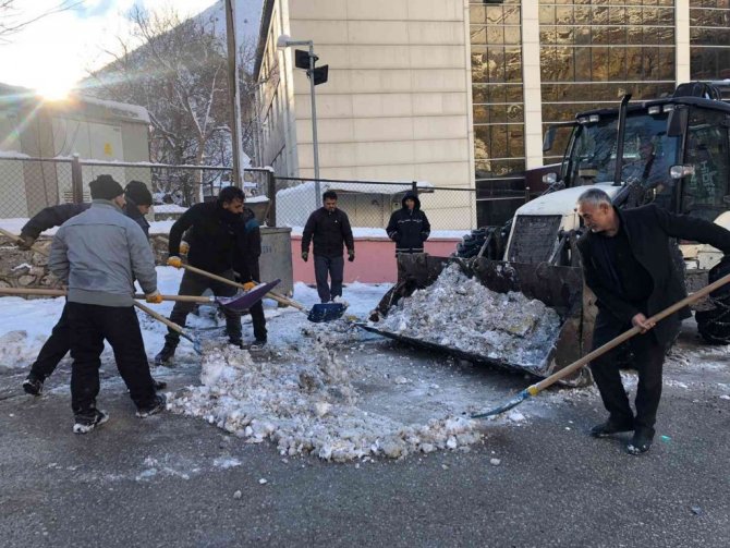 Dün akşam etkili olan kar yağışı sonrası Çatak Belediyesi Fen İşleri Müdürlüğü karla mücadele ekipleri, harekete geçti. Kar temizleme çalışmaları kapsamında ilçe merkezindeki cadde ve sokaklar iş makineleri yardımıyla temizlenirken, yayaların kullandığı kaldırımlarda da küreklerle temizleniyor.