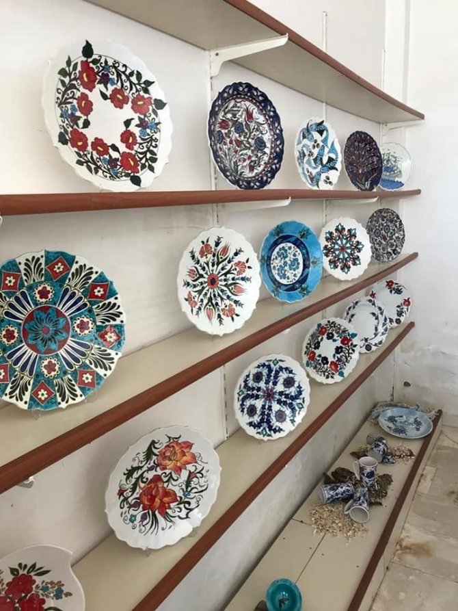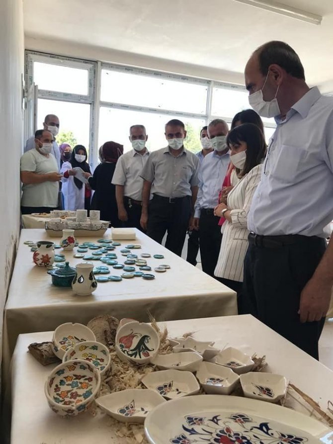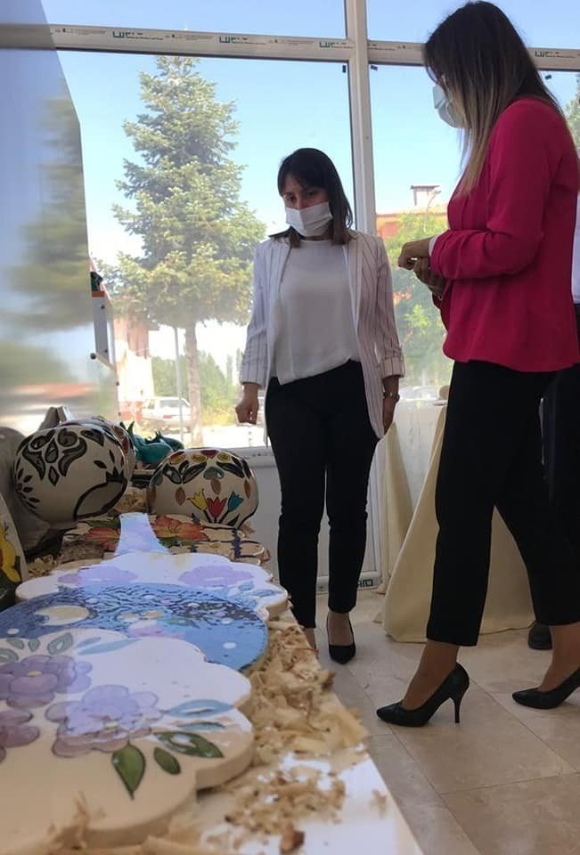 Kütahya'nın Çavdarhisar ilçesinde, sır altı çini uygulama kursu öğrencilerinin yaptığı çalışmaların sergilendiği çini sergisi törenle açıldı.