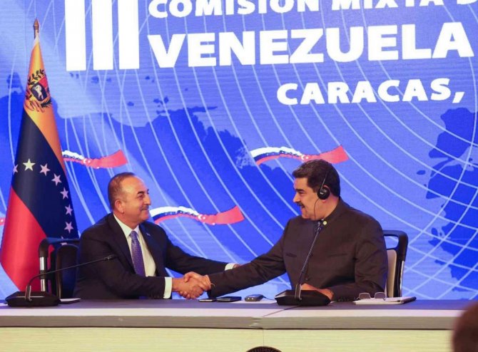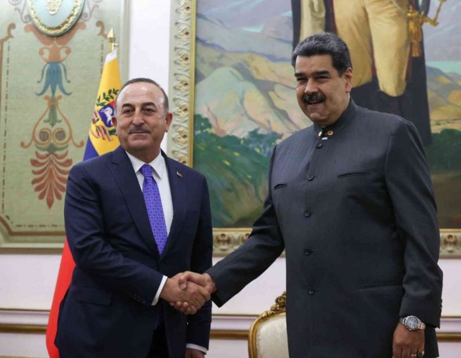 Dışişleri Bakanı Mevlüt Çavuşoğlu, Latin Amerika turunun son durağı olan Venezuela'daki temaslarını sürdürüyor. Venezuela Devlet Başkanı Nicolas Maduro ile görüşme gerçekleştiren Çavuşoğlu Twitter hesabından yaptığı paylaşımda, "Cumhurbaşkanı Nicolas Maduro'yla görüştük. İlişkilerimiz Cumhurbaşkanlarımızın dostluğu temelinde gelişiyor. Ortak İşbirliği Komisyonu üçüncü toplantısı sonrası turizm, balıkçılık, gençlik, eğitim, ticaret ve ekonomi alanlarında toplam yedi anlaşma imzaladık" ifadelerini kullandı.