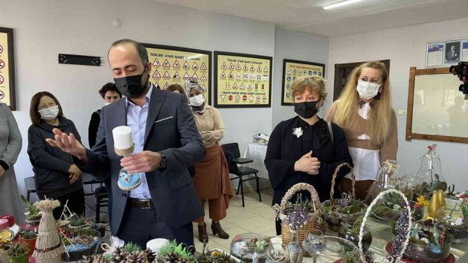 Usta öğretici Yonca Girgin, Kurum Müdürü İncircioğlu ve kursiyerlerine teşekkür etti. Girgin, " Ev süsleme sanatında ve hediyelik eşya süslemede kullanılan Teraryum sanatı camdan bahçeler olarak büyük ilgi görüyor. Geri dönüşüm ürünleri ve kullanılmayan kitaplar çok ilgi çekti. Yoğun ilgi gören kursumuzun ikincisi inşallah en kısa sürede açılır " dedi.