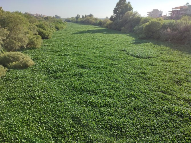 Samandağ ilçesine bağlı Tekebaşı Mahallesi'nden geçen bölümde nehir suları tamamen sümbüllerle kaplandı. İstilacı bir tür olan su sümbülleri nehirdeki canlı yaşamını da tehdit ediyor.