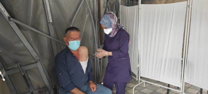 Aşı vurulmak için çadıra gelen Halit Çekerek, "3. aşımızı vuruluyoruz, devletimiz, milletimiz sağolsun aşılarımızı zamanında vuruluyoruz. Rabbim onların eksikliğini hissettirmesin. İnşallah biran önce virüs illetinden kurtuluruz" dedi.