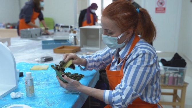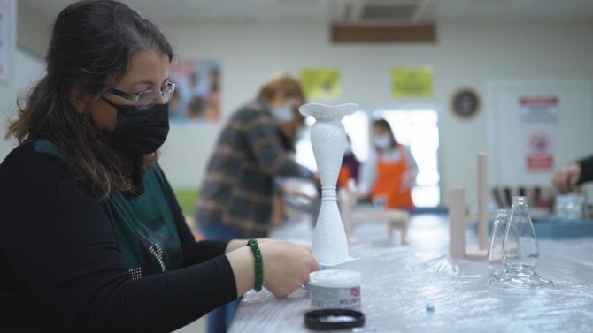 ÇEKİM'de eğitim alan kursiyer Hilal Demiral, "Tamamen hobi olarak başlamıştım. Şimdi artık evdeki her şeyi nasıl geri dönüştürebilirim diye bakıyorum. Çok keyif alarak yapıyorum. Artık yaşam tarzım oldu. Bir şeyleri geri dönüştürdüğüm için keyif alıyorum. Evdeki mobilyalarımı dönüştürdüm. Çok keyif alarak yaptım. Pandemi sürecinde benim için bir uğraş oldu. Hem çocuklarıma vakit ayırıp hem de kendime vakit ayırmak bana keyif veriyor. Kesinlikle bir terapi ve zihin temizliği olarak düşünüyorum ben bu işi. Kendilerine vakit ayırmak istiyorlarsa ve bir şeyler üretmek istiyorlarsa kesinlikle şiddetle tavsiye ediyorum" dedi.