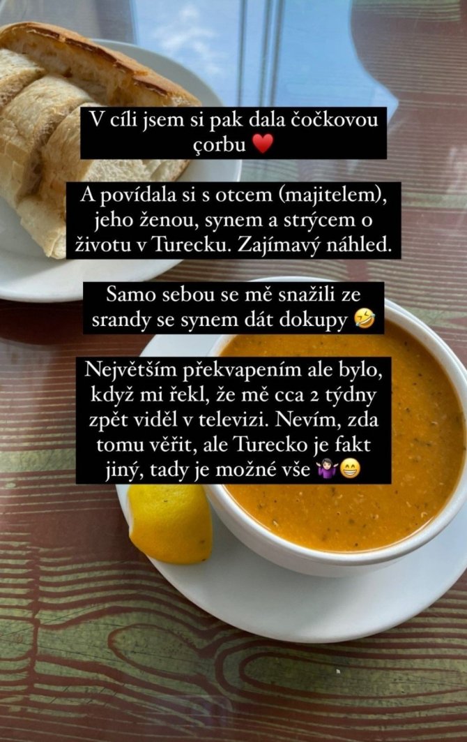 Yürüyüşünün son noktası olan İstanbul'a hayran kalan Havlova, "Hayalimdeki hedefe ulaşmak harika bir duyguydu ve hala da öyle. Sonunda İstanbul'daki muhteşem Ayasofya'nın önündeyim ve beni etkileyen duyguları tarif etmek zor. İstanbul'da olduğum için kendimi şanslı hissediyorum. Avrupa'dan Asya'ya geçmek heyecan vericiydi. Et yemediğim için birçok Türk yemeğini yiyemiyorum ama bir arkadaşımın önerisi ile mercimek çorbası ve çiğ köfte denedim. Bence çok lezzetliler" diye konuştu.