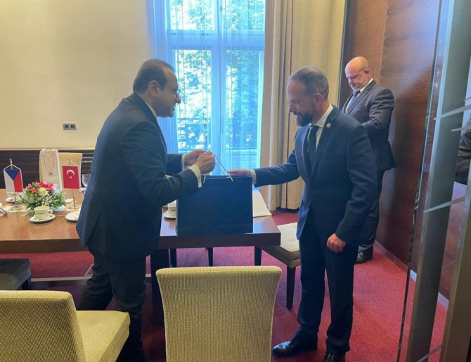 Türkiye'nin Prag Büyükelçisi Egemen Bağış'ın Çekya'nın Moravya-Silisya bölgesine yaptığı ziyarette Ostrava Belediyesi'nde Türk bayrağı dalgalandı.