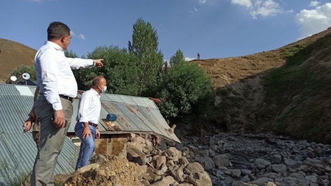 AK Parti Ağrı Milletvekili Ekrem Çelebi, Taşlıçay İlçesi Gözucu köyünde etkili olan yağış sonrası meydana gelen selden dolayı Gözucu köyünde Ağrı...