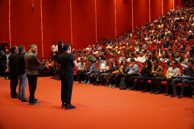 Film öncesi salonda bir konuşma yapan Cem Yılmaz, burada film hakkında yapılan eleştirilere değindi. “Türkiye’de mizah çıtası çok yüksek, yakalamamız kolay bir şey değil” diyen Yılmaz, “Eskişehir bizim mesleğimize çok insan yetiştirmiş, kültür ve sanata çok katkısı olan, hem ilgi gösterip hem de tüketebilen çok önemli bir kent burası. Filmimiz Cuma günü vizyona girdi. Sosyal medyadan takip etmişsiniz sağ olun, ‘Gitmeyin’ etiketiyle. Bunlar bizler için çok kıymetli şeyler. Ben aşağı yukarı ömrümün yarısından fazlasını mesleğimle geçirdim. Elbette ki, Türkiye’deki mizah çıtasında söz sahibi olan sizlersiniz. Bunu sosyal medyadaki çeşitli uygulamalardan takip ediyorum. Elbette çıta yüksek, bizim yakalamamız kolay bir şey değil” ifadelerini kullandı.