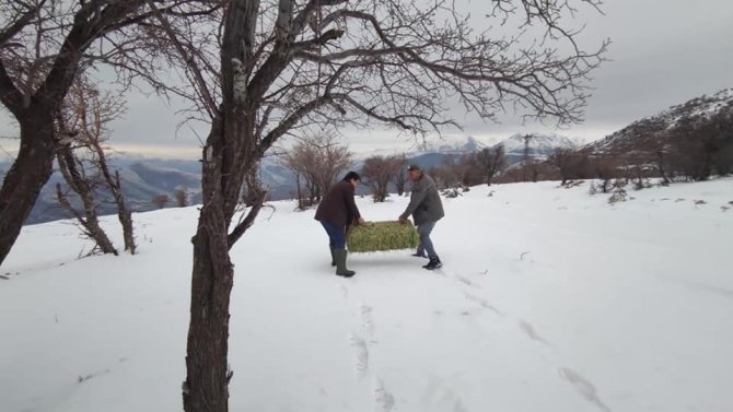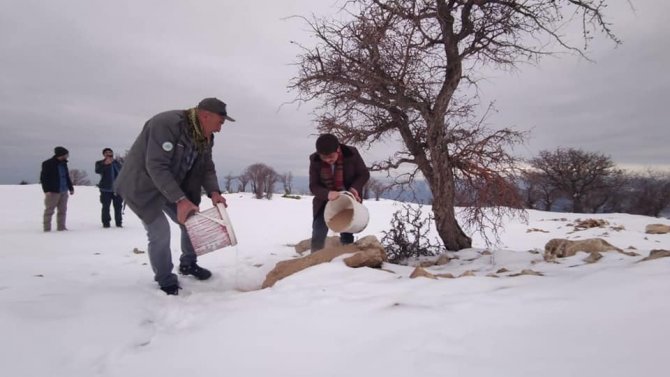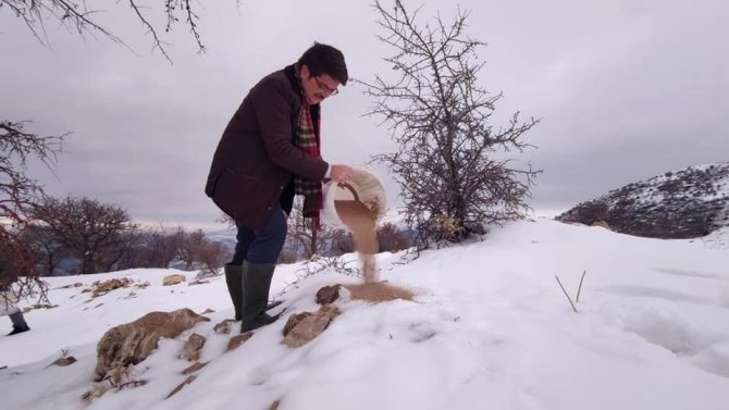 Tunceli'nin Çemişgezek ilçesinde yaban hayvanlarının kış şartlarında yem ihtiyaçlarının karşılanması amacıyla doğaya yem bırakıldı.