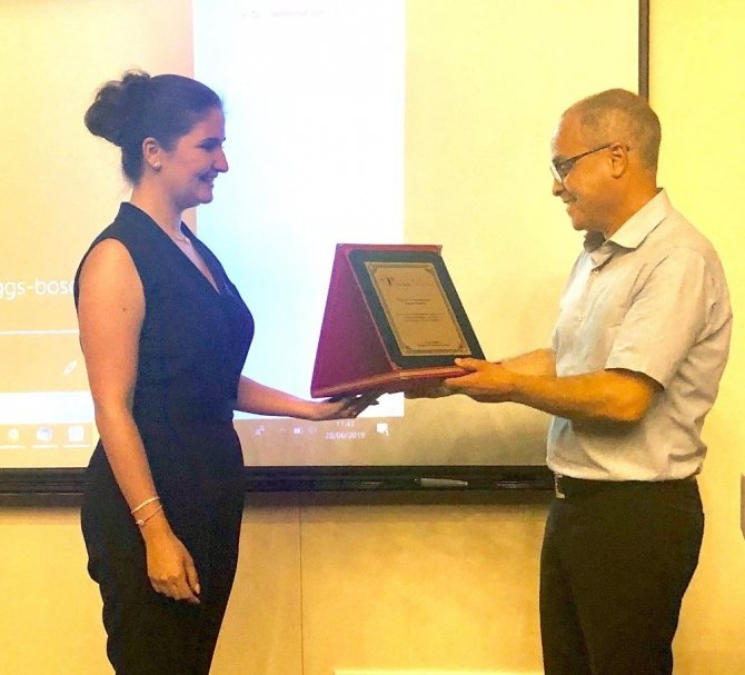 Konferansın sonunda, Özay Günsel Çocuk Üniversitesi Mütevelli Heyeti Başkanı Anna Günsel tarafından Prof. Dr. Mossadek Talby’e teşekkür plaketi takdim edildi.