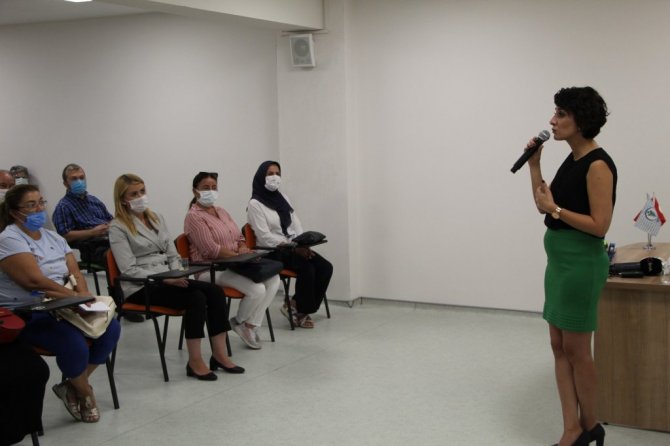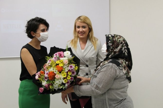 Seminerin ardından çiçek takdimi yapılırken, Özel Denizli Cerrahi Hastanesi hasta yakınlarına hijyen kitleri hediye etti.