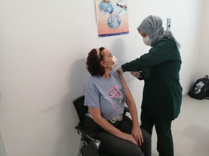 Çeşitli meslek gruplarından kişiler korona virüse karşı aşılanıyor