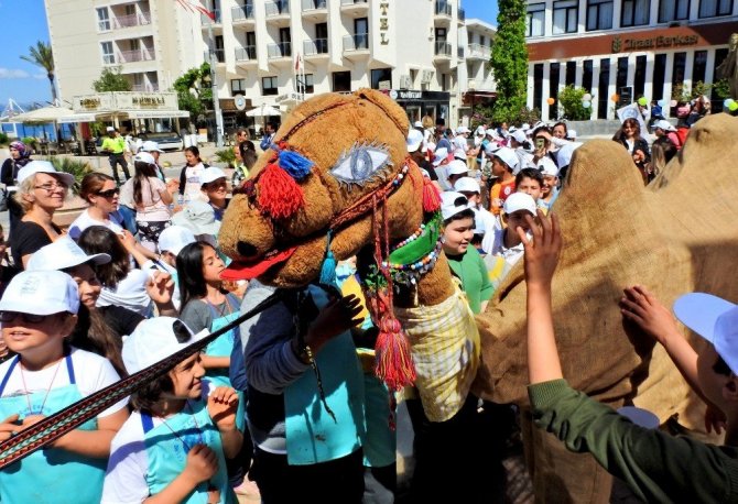 Cumhuriyet Meydanı’nı renklendiren etkinlik sırasında, Sarı Zeybek Dans ve Sahne Sanatları Derneği’nin canlandırdığı devenin çocukların arasında gezmesi sevinç çığlıklarına yol açtı.