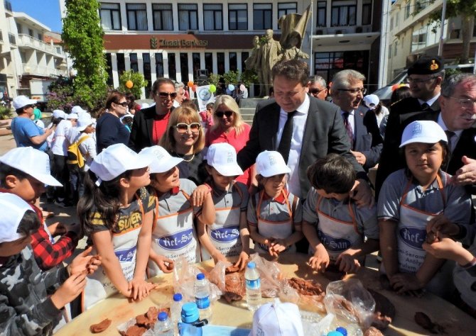 Çeşme Halk Eğitim Merkezi tarafından bu yıl beşincisi düzenlenen Çamur Şenliği’ne katılan çocuklar, kil çamuruyla hayallerini şekillendirirken, yapılan yarışmalarla da eğlendi.
