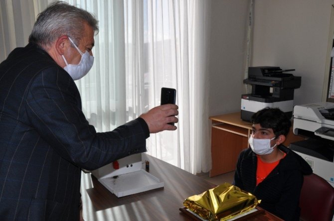 Çeşme İlçe Milli Eğitim Müdürü Şahan Çöker de, İsmail Güral Ortaokulu’nu ziyaret ederek, projeyi hazırlayan öğretmen Tufan Şaşman ve 5-B öğrencileri Emir Kocaalan, Çağan Irmak, İsa Top, Abdullah Aydın ve Eren Erat’ı tebrik etti. İlçe Milli Eğitim Müdürü Çöker, cep telefonundan İlçe Kaymakamı Ünal Çakıcı ile görüntülü bağlantı kurarak, başarılı öğretmen ve öğrencilerileri buluşturdu. Kaymakam Çakıcı, görüntülü görüşmede, öğretmen ve öğrenciler ile sohbet ederek, başarılarından dolayı kutladı.