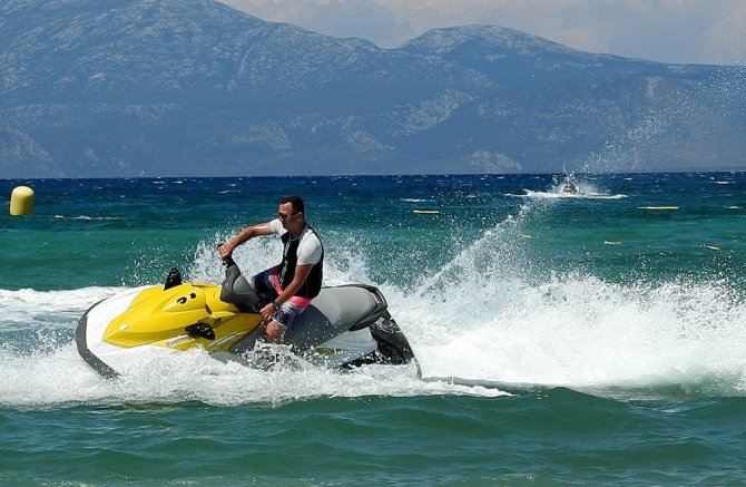 İzmir Çeşme’de sürat ve adrenalin tutkunlarının vazgeçilmez tercihi jet ski olurken, wakeboard, ringo, snowboard, flyboard, wakesurf, parasailing, banana gibi su sporları araçlarıyla da denizde keyifli anlar geçirmek mümkün oluyor.