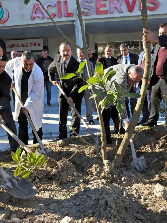 Çeşme Devlet Hastanesi bahçesine 135 fidan dikilerek yeşillendirildi.